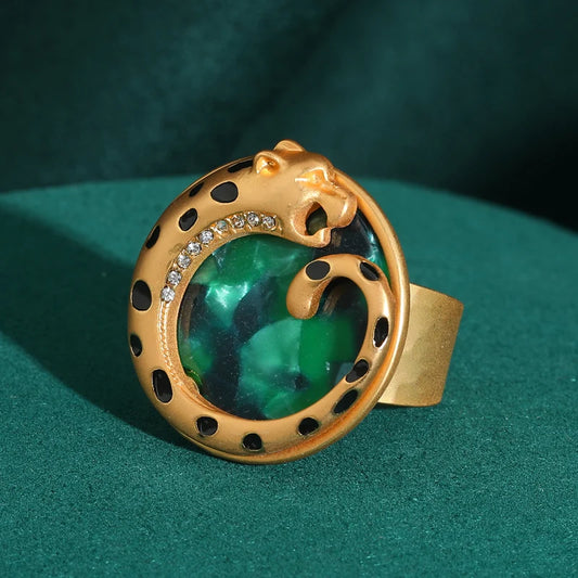 Vintage Emerald Green Glass Abalone Colorful Shell Seal Animal Antique 18k Gold Color Ring