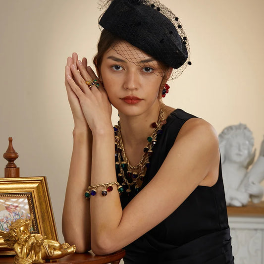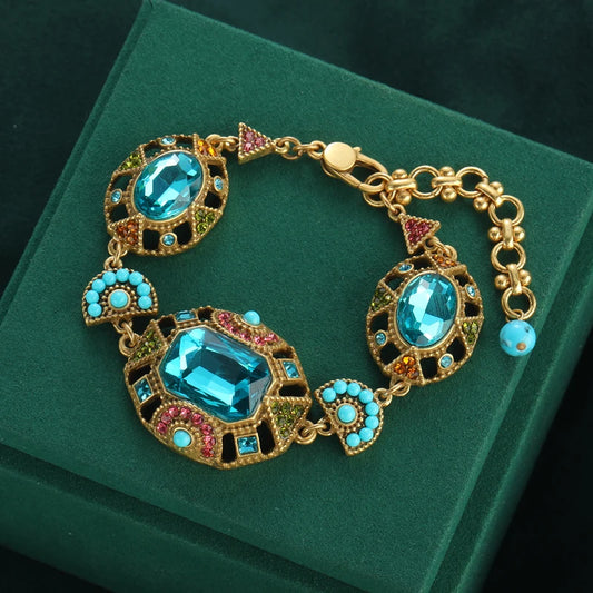 Women Vintage Multicolor Crystal18K Gold Plated Adjustable Chain Bracelet