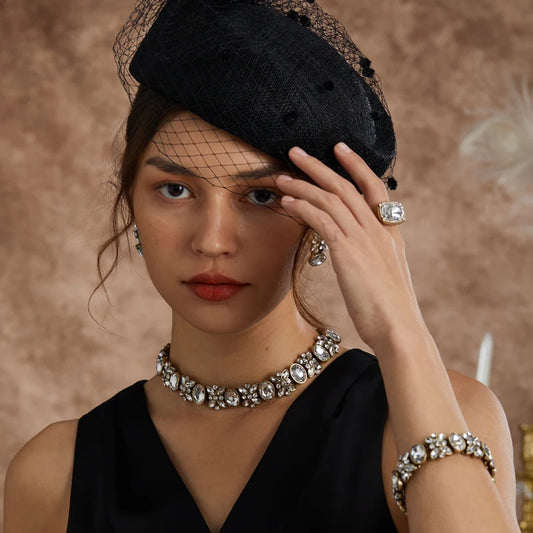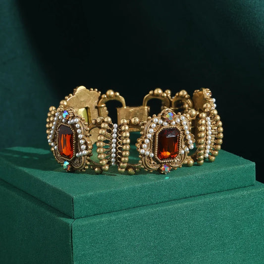Vintage Rhinestones Red Crystal Women Gold Color Crown Antique Bracelet