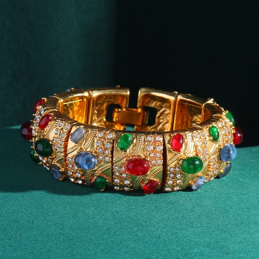 Vintage Hollow Rhinestone Opal Charm 18k Real Gold-Plated Dubai Designer Bracelet