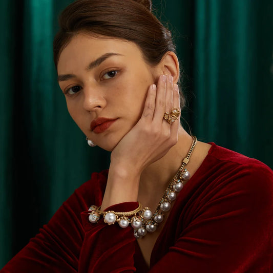 Women Vintage Natural Freshwater Pearl Wedding Designer Charms Gold Color Antique Bracelet