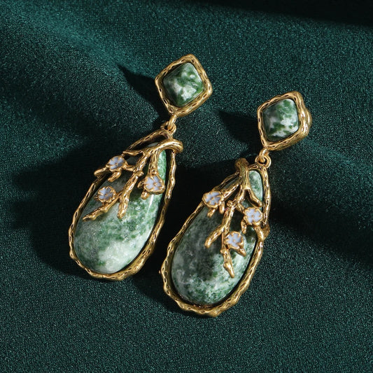 Women Gothic Vintage Drop Dangle Earrings for Woman Tassels Water Droplets Natural Green Stone Gold Color Antique Jewelry Designer New