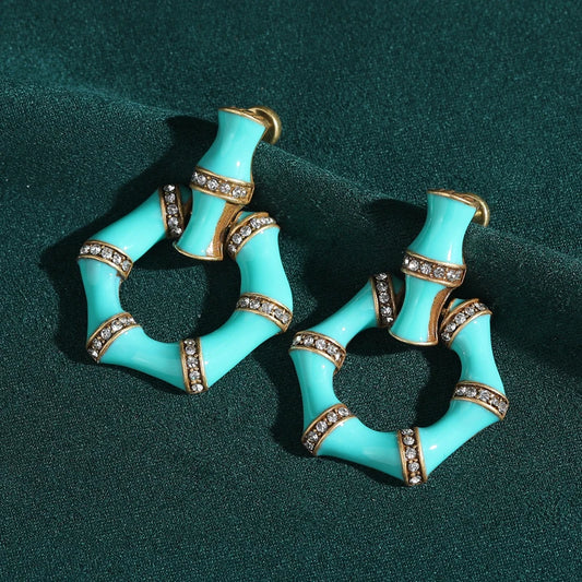 Vintage Blue Green Drip Oil Snake Bamboo Women Designer Earrings