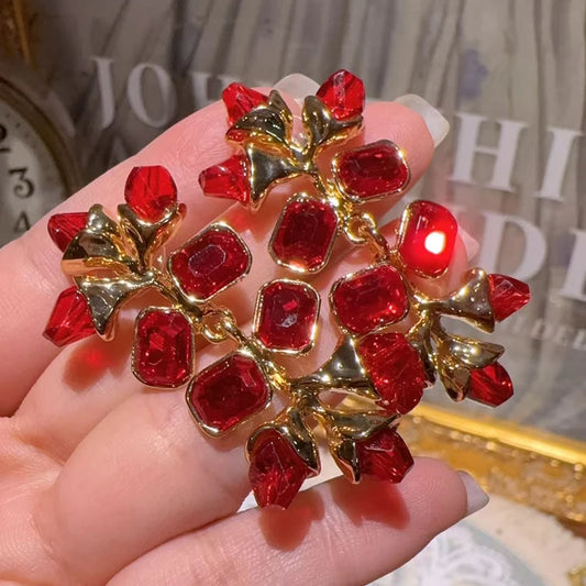 Vintage Large Red Crystal Square Leaf Bohemian Luxury Designer Women's Earrings