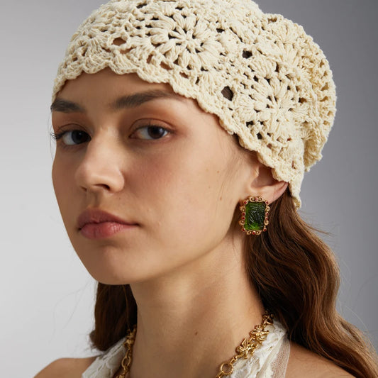 Rectangle Gold Color Green Antique Relief Palace Glass Wedding Charm Vintage Stud Earrings