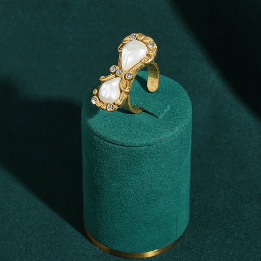Vintage 18k Gold Color Bowknot Pearl Ring White Natural Stone Opening Luxury Designer Antique Jewelry For Woman Wedding 2025 Trends