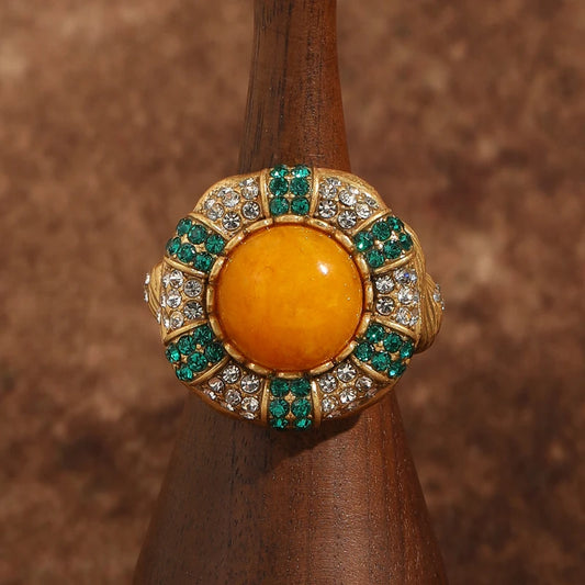 Vintage Round Yellow Stone Women White Green Rhinestone Luxury Designers Ring
