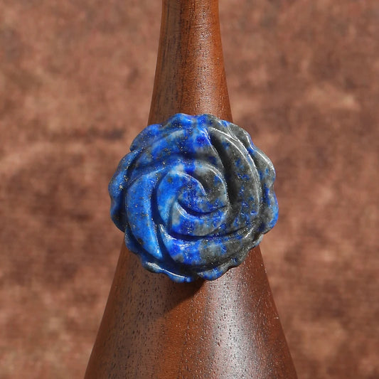 18k gold Vintage Large Rose Flower Natural Stone Engrave Blue Enchantress Luxury Wedding Ring