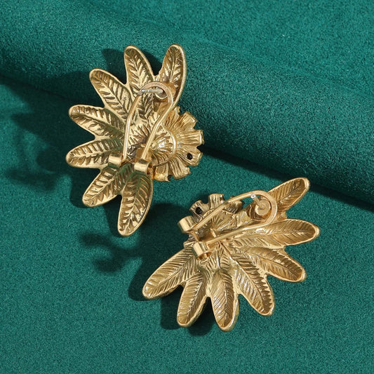 Women Gold Color Pearls Antique Vintage Half Daisy Flower Stud Earrings