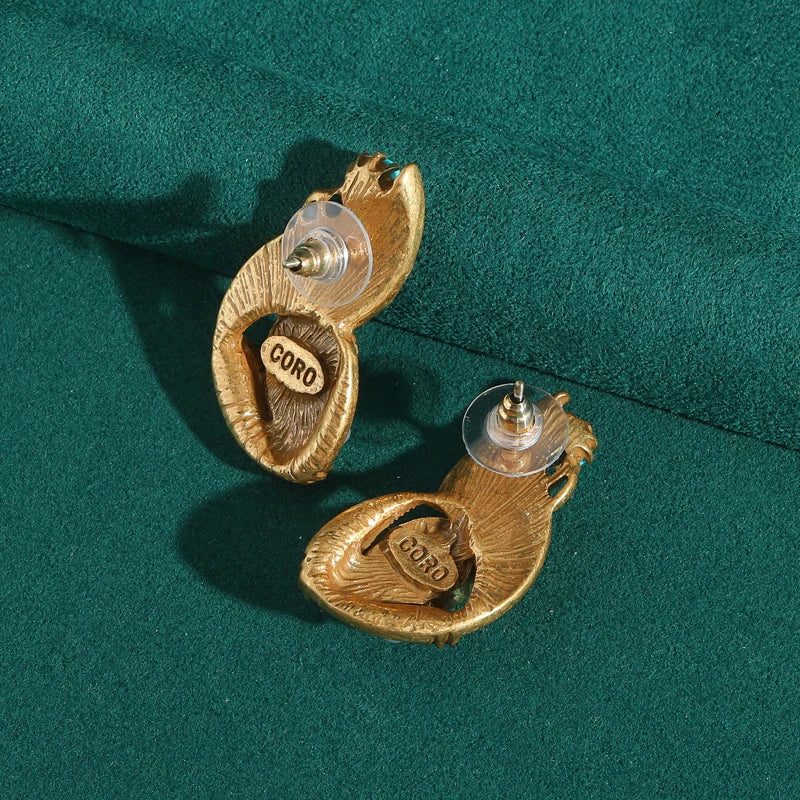Antique Luxury Water Drop Natural Stone Goldfish Blue Long Charm Vintage Stud Earrings