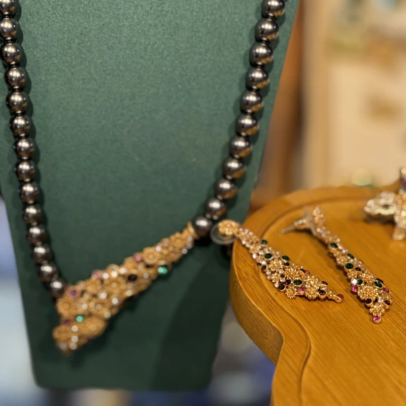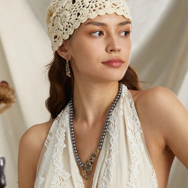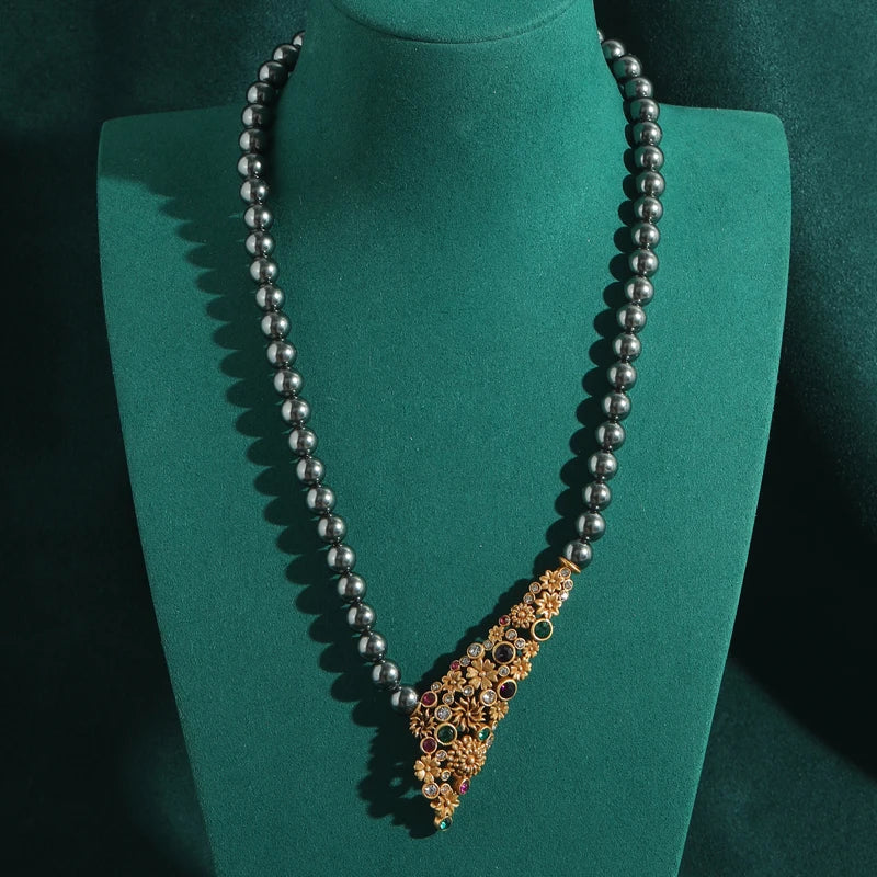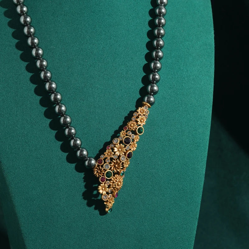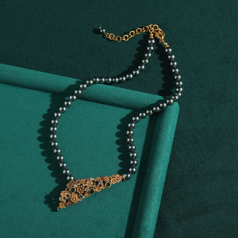 Gray Pearl Colorful Flower Gold Color Pendant Designer Wedding Bridal Necklace Jewelry