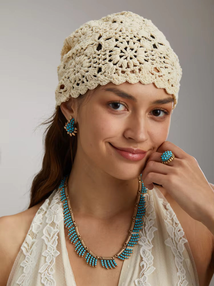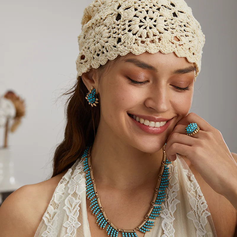 ❤[Description] Oval copper-based 18K gold-plated ring with teal turquoise cluster pattern.
