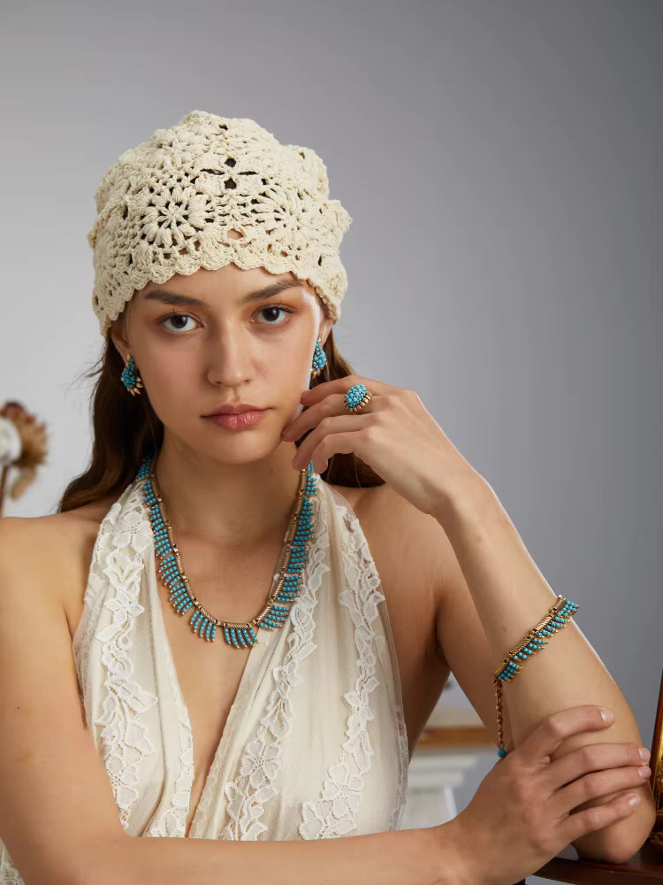 ❤[Material] Eco-friendly copper base with 18K gold plating & natural turquoise.