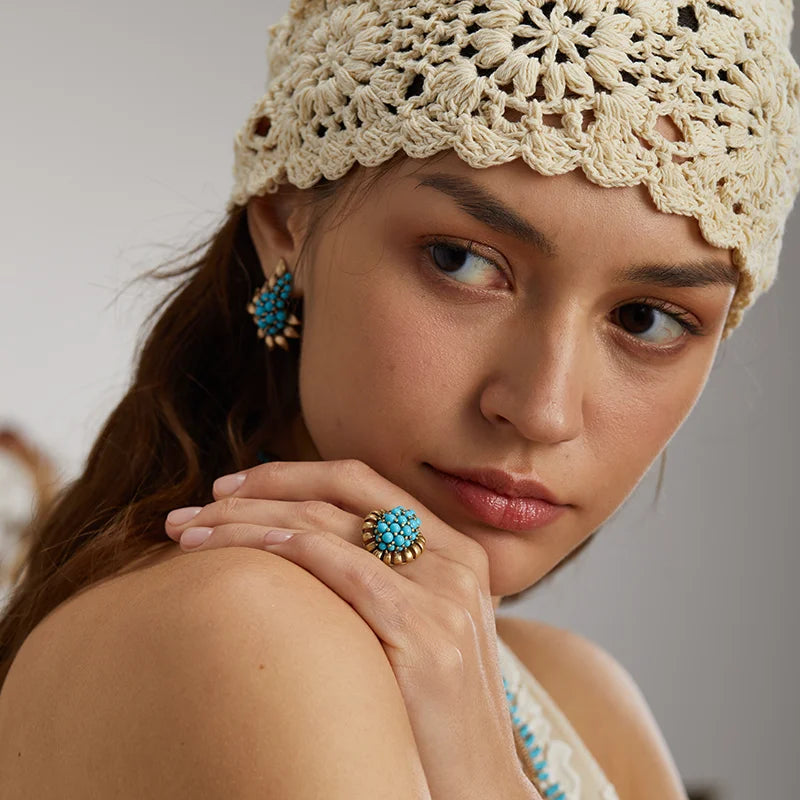 Victorian Retro 18K Gold Plated Adjustable Turquoise Cluster Banquet Ring