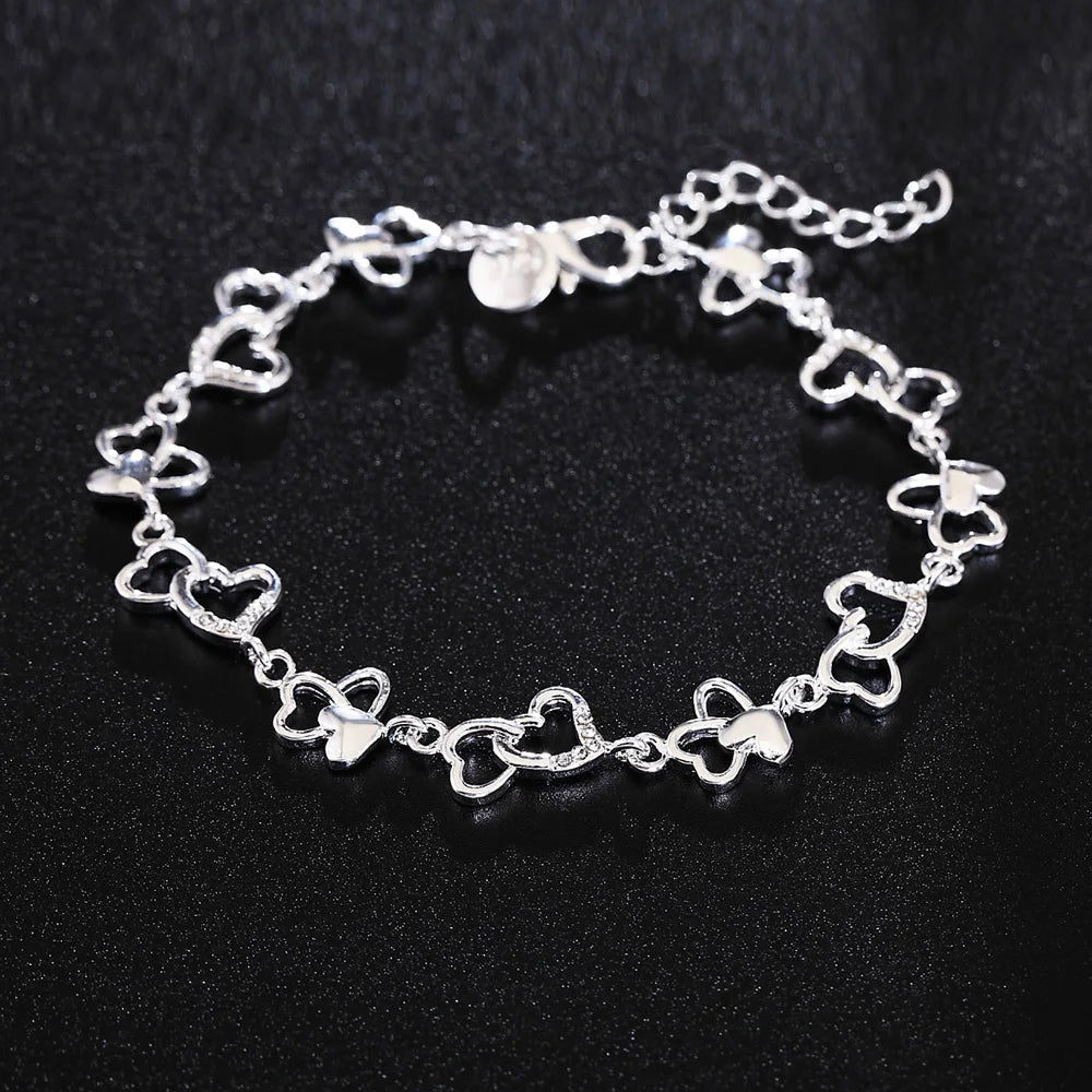 Women 925 Sterling Silver FULL Heart Zircon Wedding Party Chain Bracelet