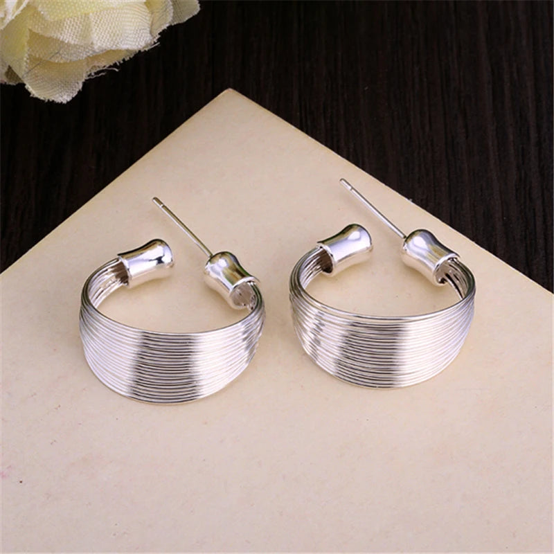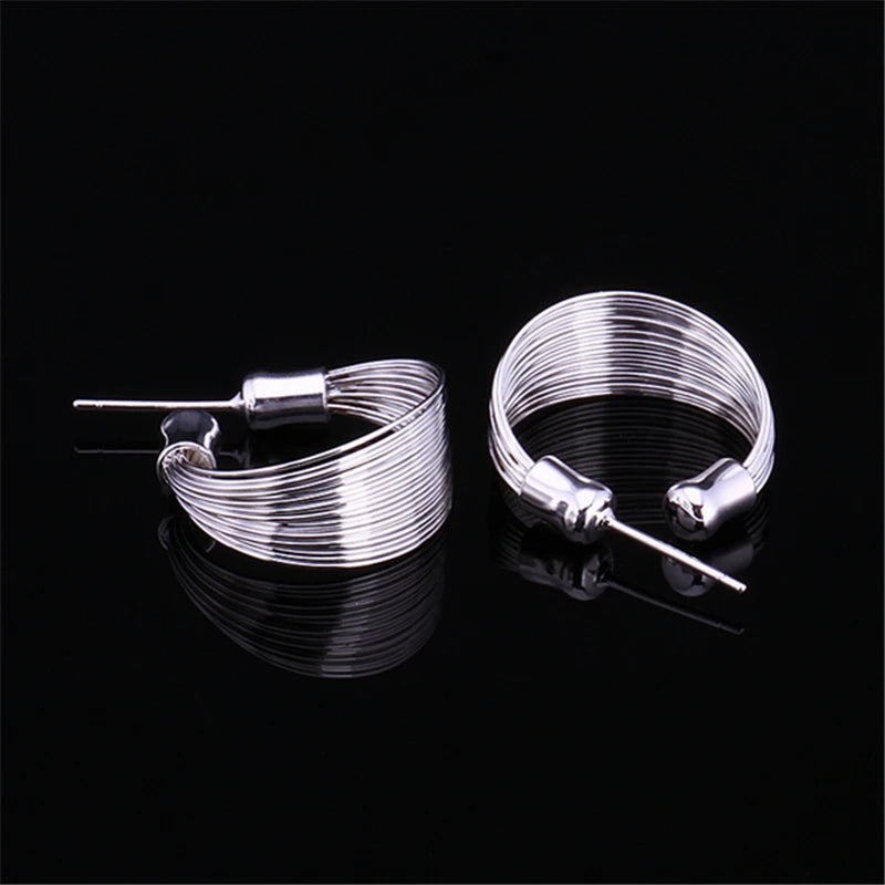 Women 925 Sterling Silver Smooth Multi-line Stud Earrings For Woman Wedding Engagement Fashion Party Charm Jewelry