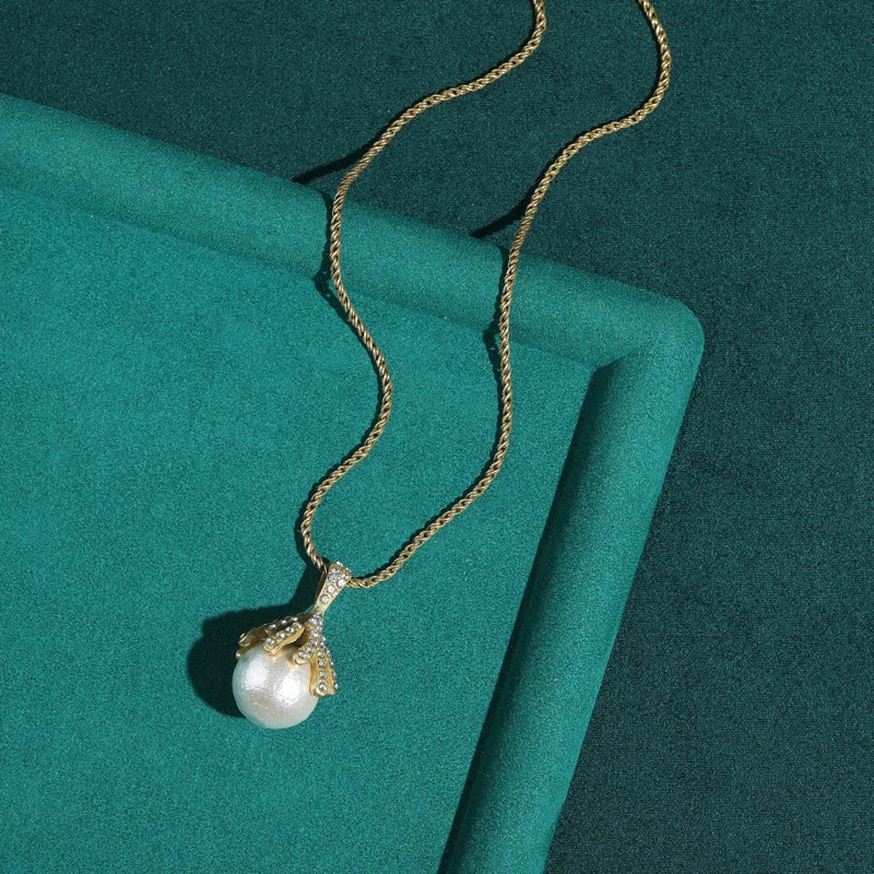 Women Vintage Pearl Freshwater Shell Rhinestone Ball Designer Wedding Pendant Necklace